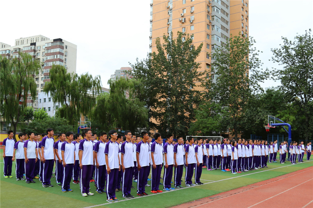 9时整,新源里校区开学典礼在庄重而严肃的升旗仪式中拉开帷幕,五星红旗冉冉升起,全体师生面向国旗致敬。首先是秦洪明执行校长致辞,他回顾了上一学年学校所取得的教育教学成果,新的发展,新的变化,表彰了取得优异成绩的同学。尤其提到了中高考成绩。今年中考,成绩比去年又有了较大幅度的提升,文化课综合优秀率为79.53%,优秀同学达到307人,有7名学生进入全区前50名,这些数据远高于其他同类校。今年高考中,拔尖学生的培养取得了丰硕的成果我校已连续三年有学生考入清华北大。2016年高考中我校1名同学考入清华大学;2名考入北京大学;一本超标人数是朝阳区最多的学校。还有一批同学考入了中国人民大学、北京外国语大学、北京理工大学、北京科技大学、中国传媒大学、南开大学、武汉大学、上海财经大学等985或211类的国家重点大学。